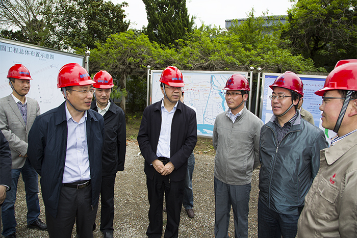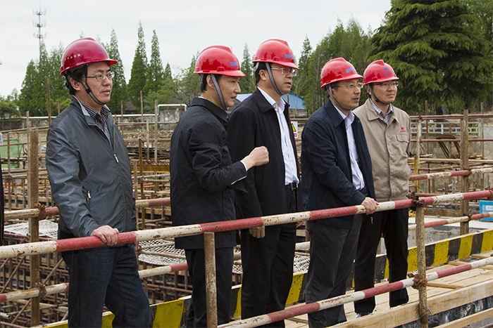429,淮河水利委员会副主任刘玉年、江苏省水利厅副厅长叶健等领导来到我公司承建的淮河入江水道扬州闸加固工程工地,调研、指导工程建设。公司董事长夏国春、副总经理顾明如、扬州闸加固工程项目经理肖强参加活动并汇报了施工管理情况。