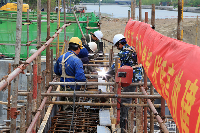 扬州闸加固工程既是淮河入江水道整治工程的重点项目之一,也是扬州市2015清水活水重大民生工程之一。项目部自201410月进场施工以来,精心组织施工,狠抓进度节点控制,在12月底完成385长的导流涵洞施工后,进入船闸主体施工,目前船闸上下游闸首已完成,闸室基本成形,进入翼墙、导流墩、工作桥施工和金属结构安装调试攻坚阶段。