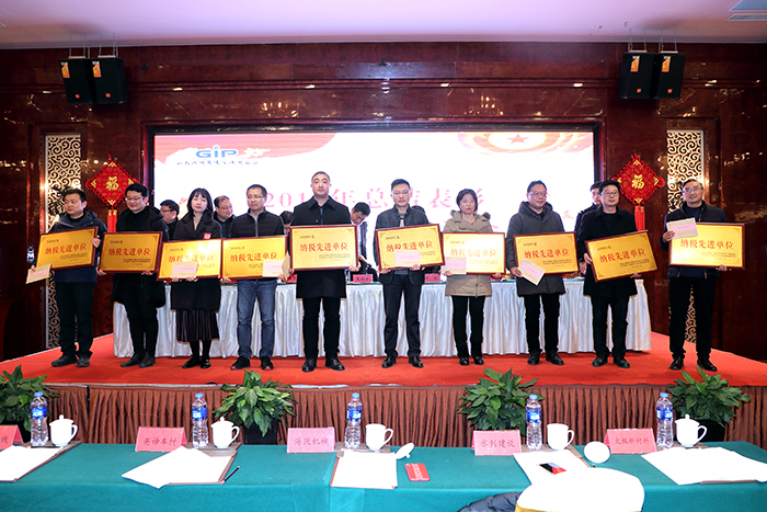 22日上午,江苏扬州广陵经济开发区召开2018年总结表彰暨2019年工作推进会议。会上,我公司和水机公司被授予“纳税先进单位”荣誉称号,开发区管委会主任戴维宝给我公司授牌。