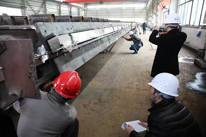 验收专家组现场查看了钢结构生产现场、装配及机加工车间,抽检了人字门关键尺寸,听取了施工管理工作汇报,一致同意高水头人字门顺利通过出厂验收。