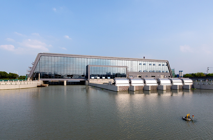 白茆塘枢纽工程为常熟市畅流活水工程的重要组成部分,枢纽采用闸站合建的方案,节制闸净宽2×0m、泵站规模为45m3/s 2孔节制闸闸门采用升卧式钢闸门,卷扬式启闭机启闭;泵站布置315m3/s竖井贯流泵,3台机组与检修间并列安排在一块底板。工程201821日签订合同,2018610日签发开工令,201965日通过水下工程阶段验收,2020110日通过工程完工验收并投入使用。