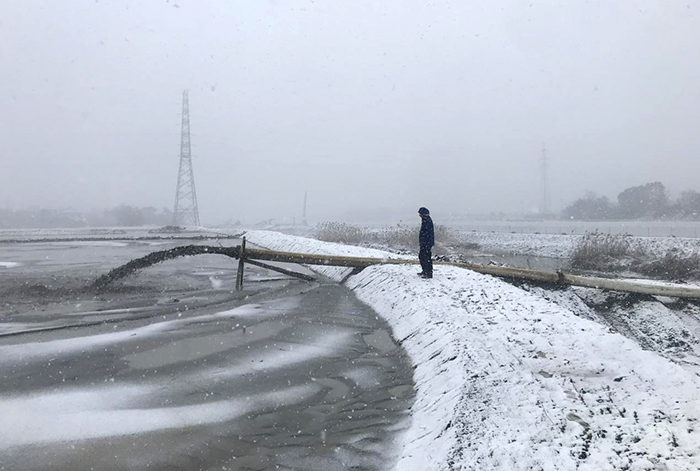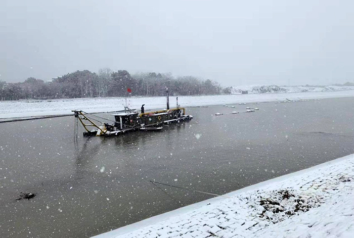 27日,落雪纷纷,银装素裹。常州分公司北干河2标的挖泥船马力全开,项目部所有人员都在迎风踏雪奔坚在施工一线。自春节至今,项目施工都没停止,这是整个新孟河项目加快施工进度推进的一个缩影。项目部抢工事迹两次被武进区电视台报道。目前,北干河2标已完成产值约8800万元,占比约103%