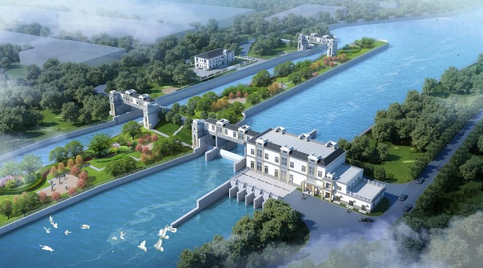 十一圩江边枢纽原节制闸及套闸建设标准较低,排江能力不足,张家港市启动十一圩江边枢纽改建工程和十一圩港河道整治工作。改建工程于528日正式开工,主要建设内容为拆除节制闸和套闸,新建十一圩江边枢纽,节制闸净宽28;泵站设计排涝流量60立方米每秒,装机3台套,总装机容量3000千瓦;套闸闸室净宽23×180米,闸首口门净宽16;连接两岸的闸顶交通桥一座等。工程建成后,可进一步提高区域防洪排涝能力、适应远期通航需要。