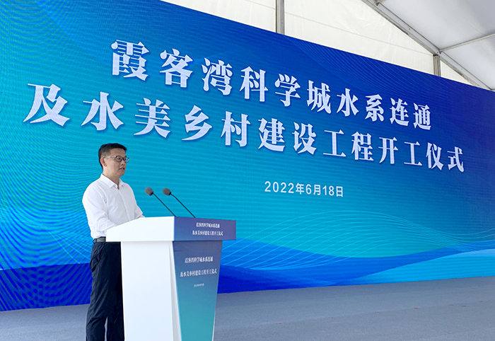 无锡市委常委、江阴市委书记许峰、江阴市委副书记、市长包鸣、市人大常委会党组书记计军、市政协主席邵文松、市水利局、霞科办等单位相关负责同志,以及工程项目各参建单位的代表参加了开工仪式。市长包鸣主持开工仪式,市委书记许峰宣布工程开工。我公司总经理杨斌在开工仪式上发言,表示公司将优质、高效地完成工程施工任务,为构建河畅、水清、岸绿、景美的水美乡村和美丽江阴做出积极的贡献。