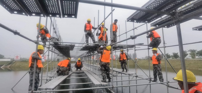 随着教官的一声令下,训练开始。抢险队员按照职责分工迅速到达指定岗位,立即进行搭、拆作业。队员们发挥特长,把在工程施工中练就的本领投入到训练当中,整个过程有条不紊,动作迅速,井然有序,操作有力。队伍的实战能力在严谨细致的训练中得到了进一步提升,操作越来越娴熟,彼此的合作也越来越默契。