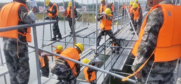 620日,公司参加全省军地联合防汛应急抢险救援培训演练队员们顶着炎炎烈日投入训练,他们挥汗如雨,在省防汛抢险训练场(南京市六合区红山窑水利枢纽)严格按照演练要求进行钢木组合土石坝钢木框架的搭、拆培训。