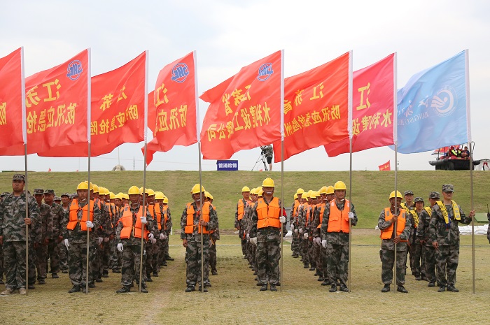 省气象局、消防救援总队、红十字会、中国安能集团第二工程局、省防汛防旱抢险中心、水文水资源勘测局、防灾减灾中心、水利防汛物资储备中心、省级防汛应急抢险专业队伍、民兵队伍、社会救援队伍等15支队伍共500余名队员参加演练。我公司综合管理部、一分公司、基础分公司、材料设备中心共组织52名防汛抢险突击队员参加演练,公司副总经理顾永明参加现场观摩。