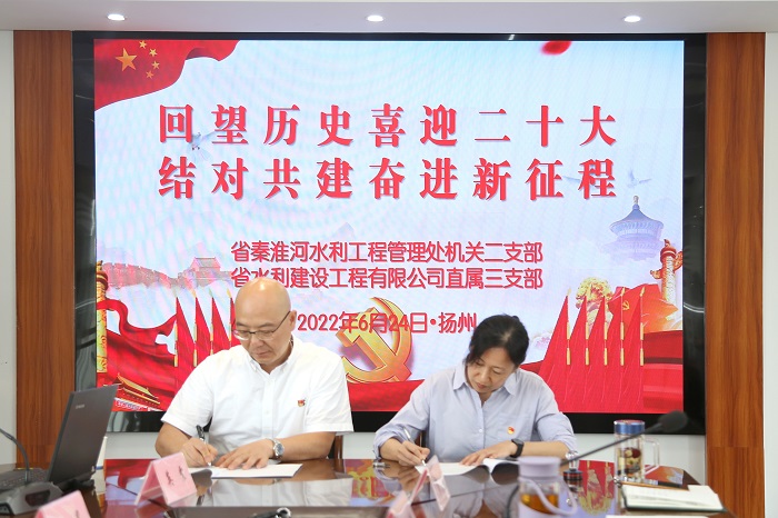 随后,秦淮河管理处机关二支部与公司直属三支部签订《党支部结对共建协议》,并结合“安全生产月”开展了进企业送安全活动。
