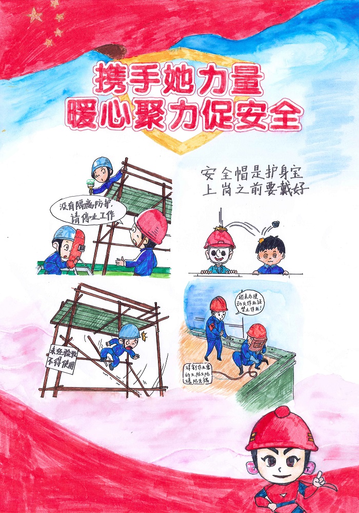 该作品紧扣安全生产特点,以一名女性安全员视角切入,展现了施工现场不同场景下的安全常识,以细腻的画风和诙谐的方式给人以启迪和教育,较好地宣传了安全文化,传播了安全理念。