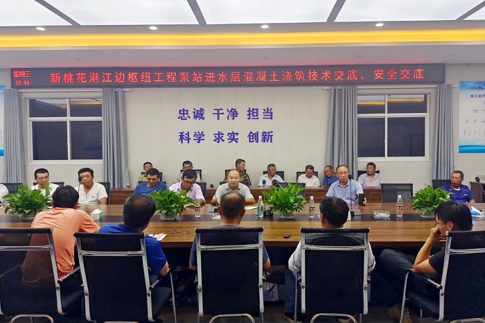 新桃花港江边枢纽工程顺利完成泵站进水流道层节点工期