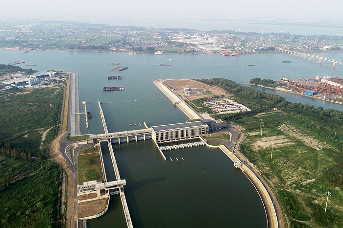 公司于2018年2月开工建设界牌水利枢纽工程,2022年1月建成投入运行,发挥了显著防洪减灾效益。2021年,为全力迎战台风“烟花”,界牌枢纽应急调度运行,参与太湖水位预降运行,泵站9台机组累计运行总时长为385小时,应急排水5280万m3