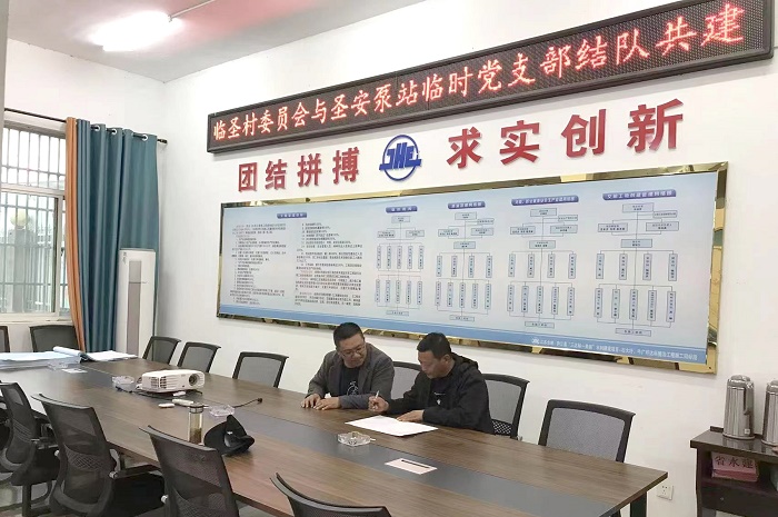 双方签订了结对共建协议,介绍了党支部的基本情况,交流了党建工作中的经验和做法。在听取群众意见后,圣安泵站临时党支部组织施工机械和人员对临圣村主干道进行翻修,为群众解决实际问题。