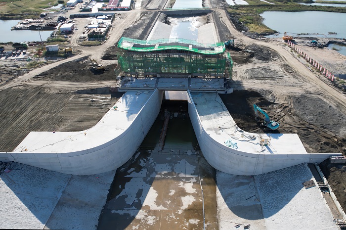 十一圩江边枢纽是武澄锡虞区引排长江骨干程之一,具有防洪(潮)除涝、引水、航运等综合利用功能。工程主要实施内容为拆除江边枢纽节制闸、套闸,新建总净宽28m的节制闸、60m3/s的单向排涝泵站以及23m*180m的套闸,工程计划于2024年6月8日具备合同工程完工验收条件。