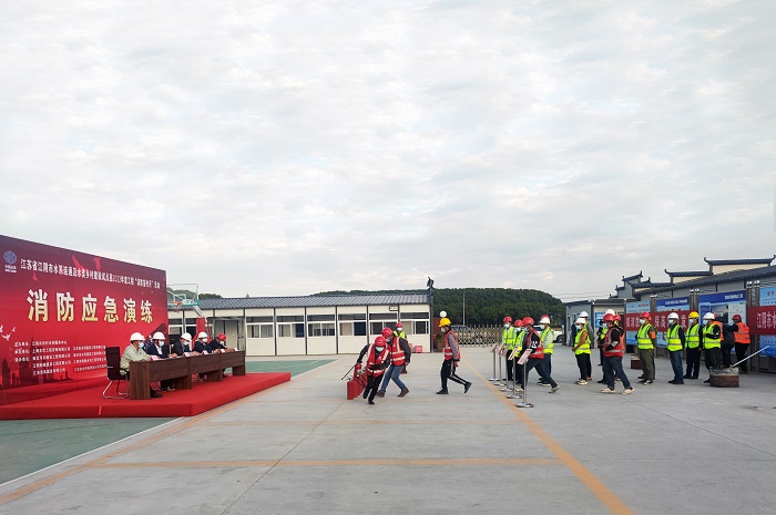 江阴市水系连通工程施工一标项目部开展消防应急演练活动
