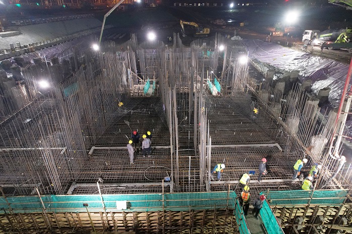 自今年5月开工以来,面临施工场地狭小、地质条件复杂、雨水天气多等诸多不利因素,项目部合理规划、加派人手、积极组织技术人员开展技术攻关,解决了底板开挖时坡面渗水、基础处理桩型多、施工难度大等问题,展现了江苏水建强大的战斗力。