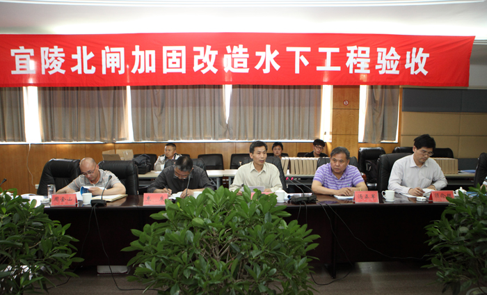 本次水下工程验收的主要项目包括:上下游联接段护坡,闸室结构,公路桥工程,闸门、埋件制作与安装,启闭机安装。与会专家通过现场查看、听取汇报、查阅资料的方式,认为宜陵北闸加固改造水下工程已按批复的设计内容和标准完成,施工管理组织严密,工程档案资料基本齐全,质量符合设计要求,一致同意通过水下工程验收,同时,要求各参建单位要认真总结前一阶段工程建设经验,进一步抓好安全生产,全力做好后续工程建设。