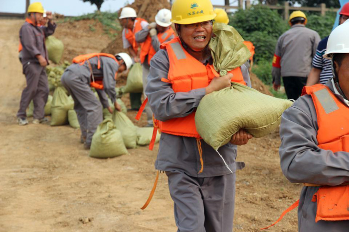 刚消灭“火魔”,汛情接踵而来。“连续暴雨,造成大运河内外河河水猛涨,洪水即将漫过施工围堰堰顶,雨水的冲刷使得围堰出现滑坡、管涌等险情……”。接到现场值班人员的险情报告后,应急救援副总指挥朱建平用对讲机通知救援队队长,要求立即组织资源和带领抢险队人员到内河围堰上进行抢险。