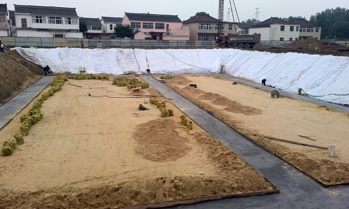 沉井砂垫层铺筑完