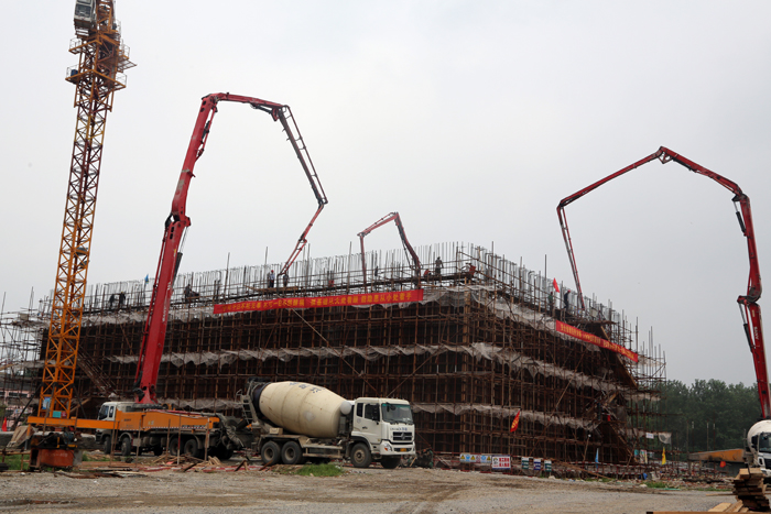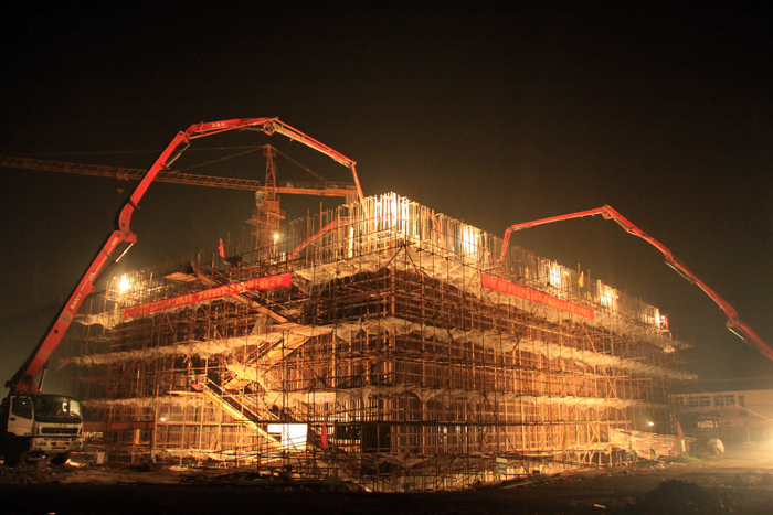 3台泵车15辆罐车同时浇筑作业