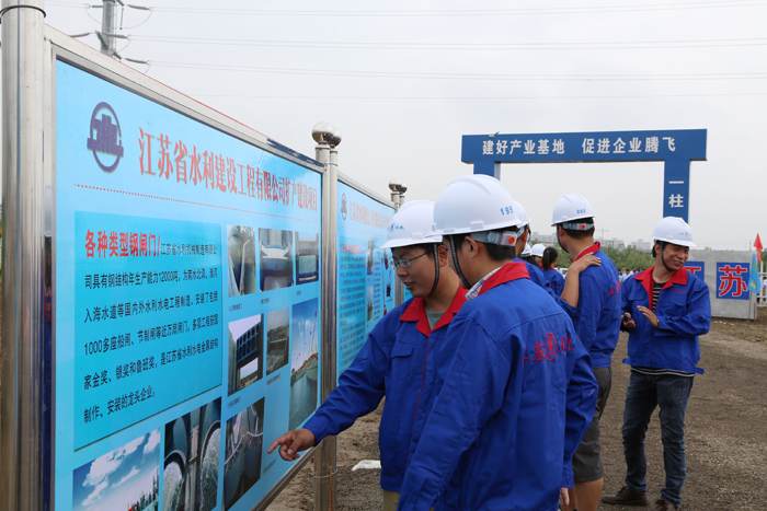 会议由广陵区区长陈曦主持。我公司董事长夏国春介绍了项目情况。本项目建设地点位于广陵经济开发区核心地块,占地134亩,建筑总面积6.2万平方米,计划总投资10亿元。项目建成后,将以先进高效的生产设备和工艺技术为引领,以年产8000吨钢闸门为核心,形成启闭机类、闸门类、清淤机类等水利机械设备制造生产基地。此举将进一步增强公司发展后劲,进一步提升水利机械行业制造水平和产业化规模,更好地为国内水利基础设施建设服务。