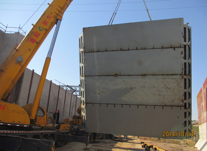 进入10月份以来,省水机公司高良涧船闸项目部经过十多天的准备,制订了吊装作业方案,修整了进场道路,整体铺设了100多吨钢板,确保了大型平板车安全平稳转运闸门。15日上午1030分,采用400t130t汽车吊配合作业,顺利将上闸首2扇闸门吊装就位。上闸首闸门完成吊装后,经过进一步加固调试后,将形成新的防洪体系。待水利等部门检查验收后,即可进行下闸首施工,为加快建成高良涧船闸扩容工程,实现通航目标打下了坚实的基础。