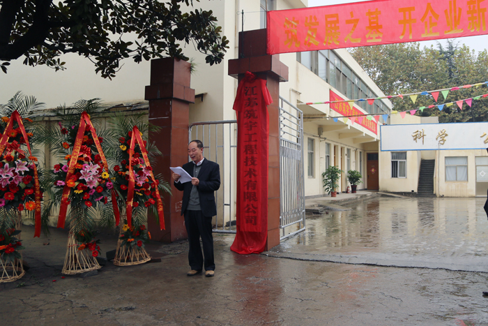 10时许,绵绵细雨浸润下的绿阴显得格外葱笼清新,筑宇公司大门前彩旗招展,鲜花绽放。在筑宇公司董事长章根兴的主持下,大家排列整齐、满怀喜悦地见证揭牌时刻的到来。公司董事长夏国春和筑宇公司经理常锦亮共同揭开红绸,标志着这个集勘探、设计、检测、实验于一体的新公司扬帆起航,开启发展的新宇天地。