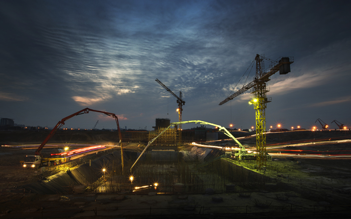 2015489日,经过连续24小时施工,新沟河江边枢纽工程顺利完成了泵站首块底板砼浇筑,标志着江边枢纽闸站主体工程施工进入了全面实施阶段。本次浇筑的底板为单向泵底板,顺水流方向长35,宽32.2,厚1.6,砼浇筑量达1800余方。