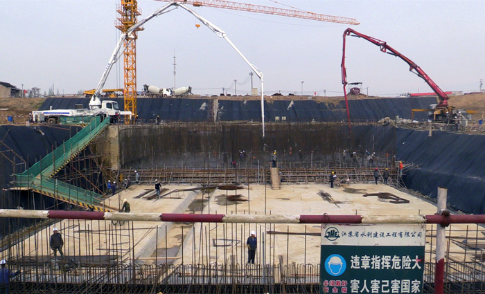 新沟河江边枢纽完成泵站主体首块底板砼浇筑
