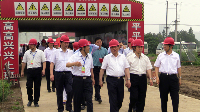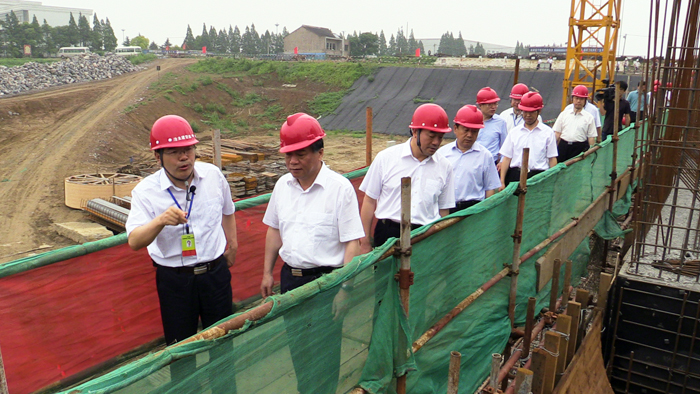 624上午,省委常委、常务副省长李云峰率领省有关部门负责同志调研太湖水环境综合治理新沟河拓浚延伸工程建设情况。省水利厅党组成员、省水利工程建设局局长朱海生汇报了工程建设情况。我公司董事长夏国春、副总经理、总工程师翟高明参加调研活动。