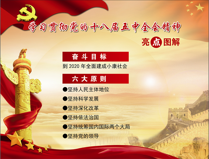 公司直属第一党支部根据党委工作部署,制作了学习贯彻十八届五中全会精神宣传标牌,并在公司企务公开栏张贴宣传。宣传标牌按照全面建成小康社会新的目标要求、“四个全面”战略布局、“五大发展”理念、“六个坚持”发展原则等板块,通过条理清晰、浅显易懂的条目式解读,使广大职工能够更加直观地领会会议精神,提高学习效果。