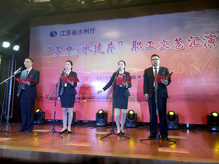 1218,省水利系统“苏中、水建片”职工文艺汇演在泰州引江河管理处会议中心隆重举行,省水利厅机关党委书记汤超、工会主席张晓迅以及片区各单位工会领导现场观看了演出。我公司选送的配乐诗朗诵《治水壮歌》和男女声对唱《人间天河》分别荣获朗诵类和歌唱类节目三等奖。