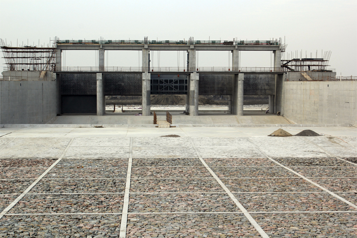 工程于2015412开始施工;69开始地基处理;817浇筑第一块闸室底板;201612水闸主体混凝土施工全部完成;2016120水下工程全部完成。面对工期紧、工程资金支付条件差等困难,一分公司和项目部一起优化施工方案,增加资源投入,全力以赴推进工程进展。在公司各级领导、南通九圩港项目部、泰兴马甸项目部的大力支持下,提前完成了水下工程施工任务。