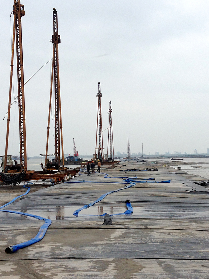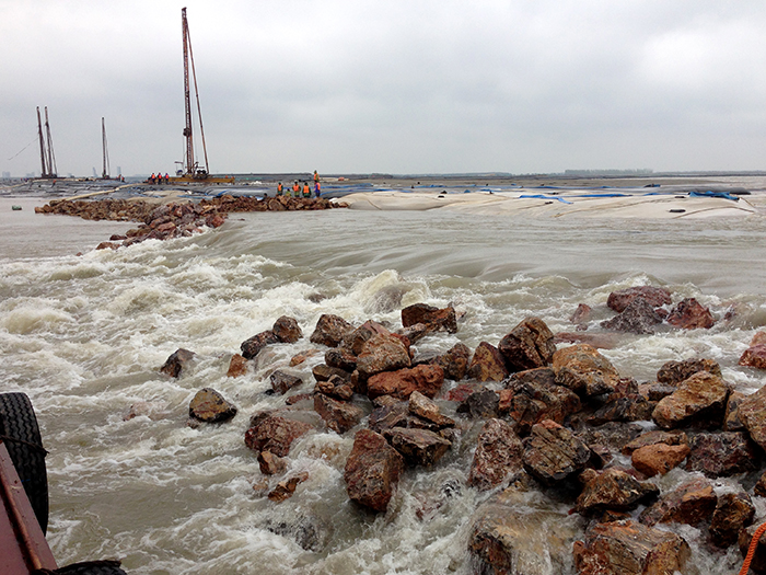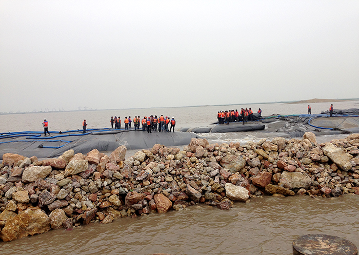 该工程是苏州市目前最大的一项围滩整治工程,工程总造价约为2.1亿元(含合同外5500万)。自工程开工以来,项目部克服了前期临时航道疏挖、围堤合龙难度大、护砌工期紧以及吹填工程量大等不利因素,积极采用新技术、新工艺,优化专项施工方案,全力以赴推进工程进展。合同内项目于2015429通过了单位工程验收,5月底全部工程均在合同约定的工期前完成。目前,工程经历了一个完整汛期,施工质量得到了有效考验。