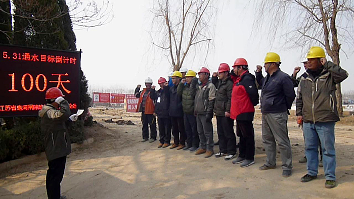 220下午,皂河闸工程项目部举行了百日宣誓活动,警示和激励项目部全体成员时刻保持昂扬的斗志,全力以赴加快工程施工进度,确保如期实现531水下工程通水目标。