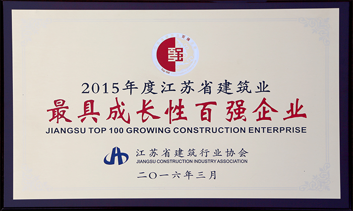 331,江苏省建筑行业协会第六届五次会员代表大会暨2015年度江苏省建筑业双百强企业评价排名发布会在南京召开,我公司被认定为江苏省建筑业最具成长性百强企业。