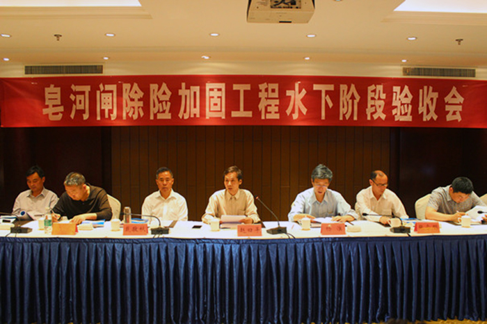 67日,由我公司三分公司承建的皂河闸除险加固工程通过了水下工程阶段验收。验收会议由省水利厅基建处调研员赵曰平主持。我公司总经理时爱祥、副总经理杨斌参加了验收活动。