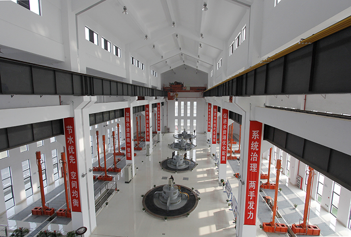 江边枢纽工程是七浦塘与长江交汇口的重要口门控制性建筑物,由已建节制闸、船闸和增建泵站三部分部分组成。增建泵站属于大(2)型,总装机流量为120m3/s,四台套开敞式立式轴流泵,单机流量30m3/s,配套1800kW高压同步电机。