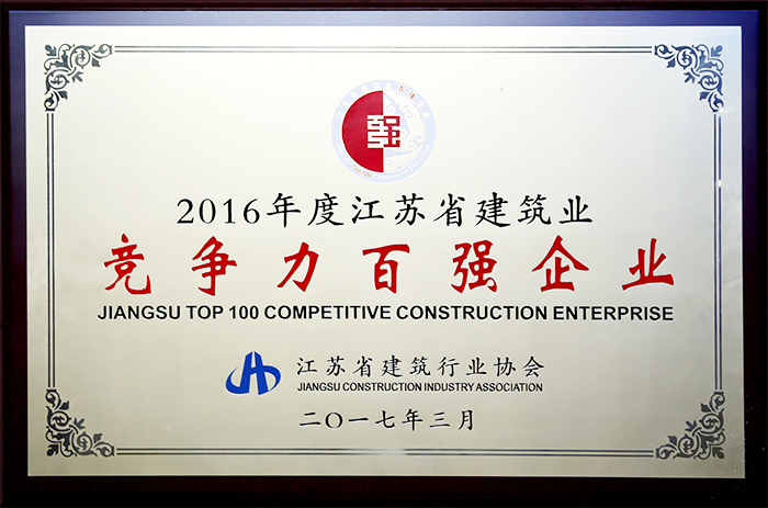 512日,江苏省建筑行业协会第七届一次会员代表大会暨2016年度江苏省建筑业双百强企业评价排名发布会在南京召开,我公司被认定为江苏省建筑业竞争力百强企业。
