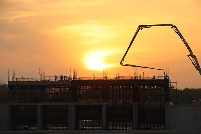 该工程于2017210日开工建设,因受地方征迁等因素影响,331日才浇筑第一块闸室底板。为保证施工进度,项目部精心组织,编制了详细的抢工计划,各施工班组做到“大雨不停干、小雨正常干、晴天拼命干、夜间挑灯干”,齐心协力组织赶工。至526日,两座蓄水闸主体工程全部结束。项目部用不到两个月的时间完成了正常四个月的施工任务,为工程按期通水奠定了基础。