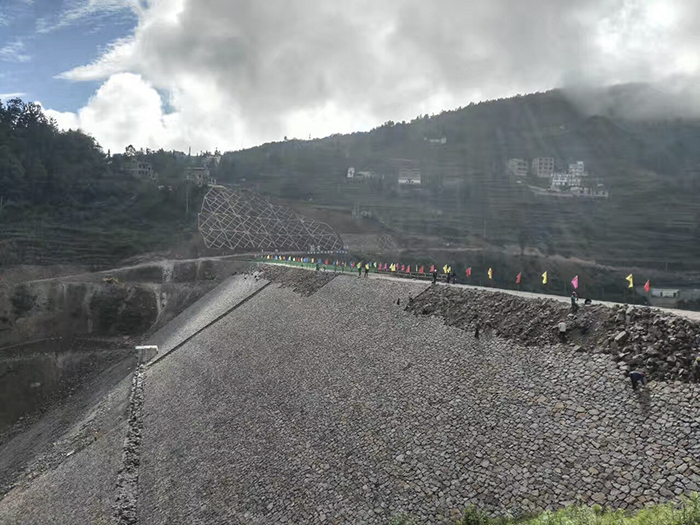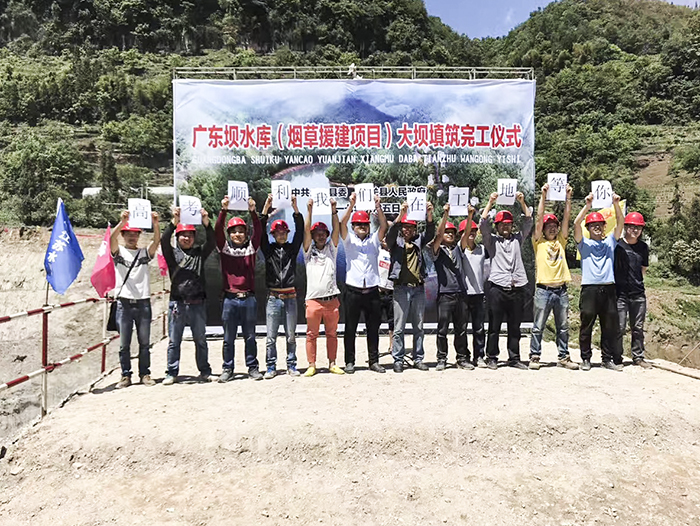 工程举行了简朴而热烈地大坝封顶仪式。大关县县委、县政府领导、水利局、烟草公司以及公司领导一起见证了这一喜悦时刻。