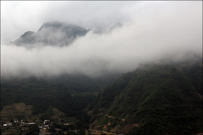 蜿蜒的盘山道路,一边是悬崖,一边是高山