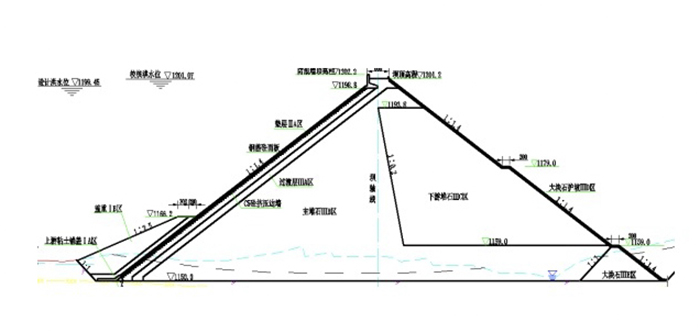 工程大坝填筑总方量为376706m3,其中堆石料328522m3,过渡料21298m3,垫层料16704m³,黏土铺盖730m³,盖重料3472m³,下游块石护坡5980m³。