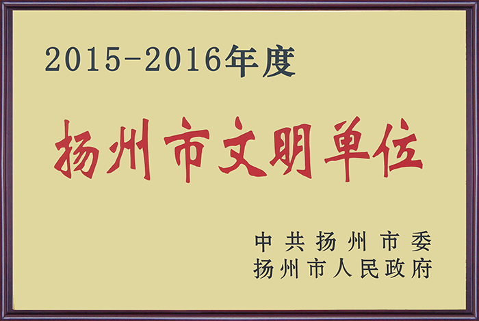 近日,扬州市委、市政府发文,对2015-2016年度扬州市文明单位、文明校园、文明社区、文明行业、文明村、文明乡镇进行了命名表彰,我公司被命名为扬州市文明单位称号,这是我公司连续20多年获此殊荣。