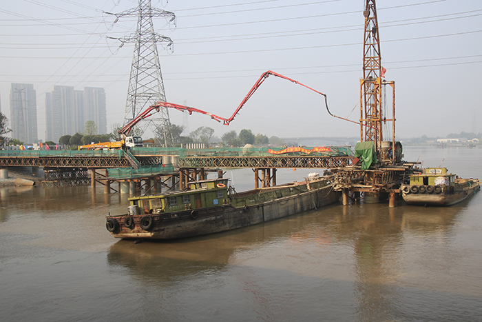新西闸桥项目由我公司基础分公司承建,项目部于2017216日进驻现场,320日完成临时设施建设,322日开始施打第一根陆上灌注桩,519日开始施打水上灌注桩,727日水上最后一根灌注桩浇筑结束。项目部克服了水上水流湍急、水下地质条件复杂、夏季连续高温等不利条件,严抓质量、安全管理,紧扣施工节点要求,顺利完成了全部水上、陆上灌注桩施工任务,为下一步工序开展创造了良好的条件。