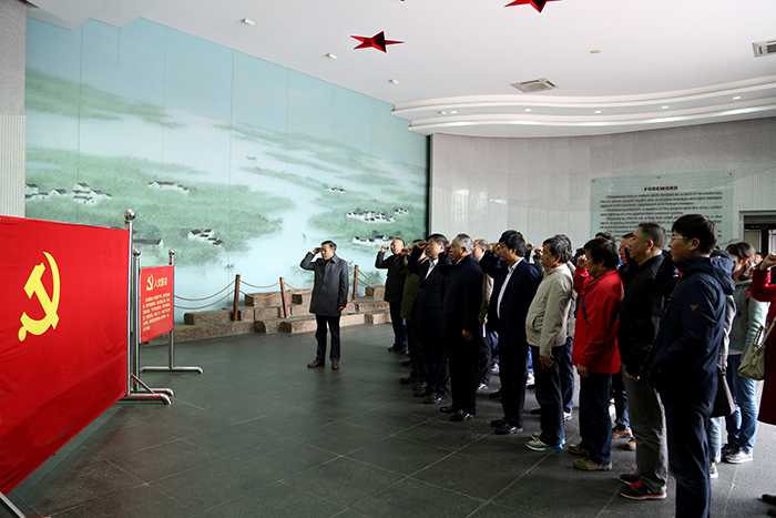 18日上午,参会代表来到常熟沙家浜红色教育基地参观学习。在沙家滨革命历史纪念馆,大家面向党旗,举手宣誓,重温入党誓词。大家观看了民主革命时期沙家浜的革命历史图片和革命文物,感受了当年的抗日场景和军民鱼水深情,从心灵深处接受了一次洗礼,进一步坚定信念,不忘初心,牢记使命,为奋力推进新时代江苏水利新发展、为实现中华民族伟大复兴的中国梦不懈奋斗。