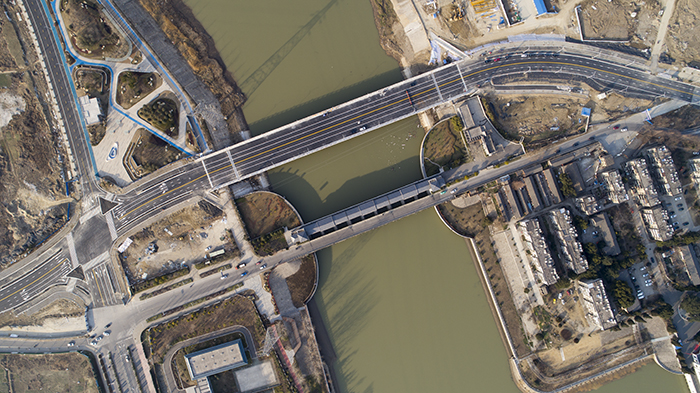 新西闸桥位于扬州市江都区老西闸桥上游,桥梁起点向北顺延与建都路顺接,桥梁终点通过环岛与长江路和滨湖路顺接,全长约580m,桥梁宽28,全长221m。大桥建成通车为江都区老城区与新城区提供了更加快捷的通道,完善了区域路网畅通系统,推进了南水北调源头核心区的生态建设