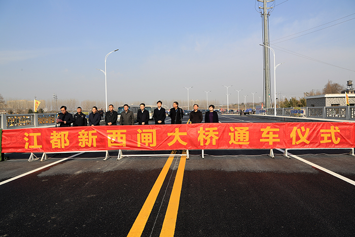 214日,由我公司基础分公司承建的江都区建都路新西闸桥正式通车,江都区政府在现场举行了简朴的通车仪式,江都区区长韦峰宣布大桥正式通车,我公司董事长时爱祥在仪式上发言。