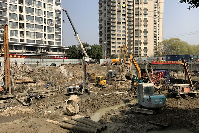 洋桥活动堰工程是常州市主城区“畅流活水”四座活动堰工程中的一座,建成以后能够营造城周水势、增加入城水量,实现城内科学配水,满足常州市东北部城区先期活水需求。本工程工期紧,2018128日开工,525日需具备水下验收条件。由于工程位于市中心居民区旁,场地狭小,作业时间受限,施工难度大。目前正在进行灌注桩、高喷桩的施工,计划41日起开始主体工程的建设。
