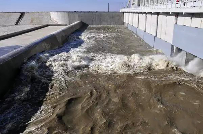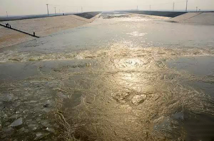 奔腾的江水顺着渠道向前流淌