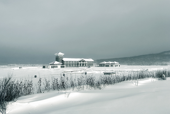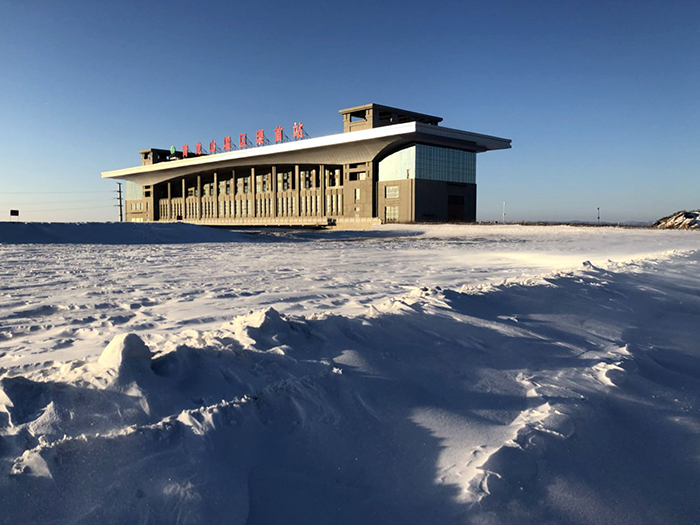 皑皑白雪映衬下的青龙山灌区渠首站